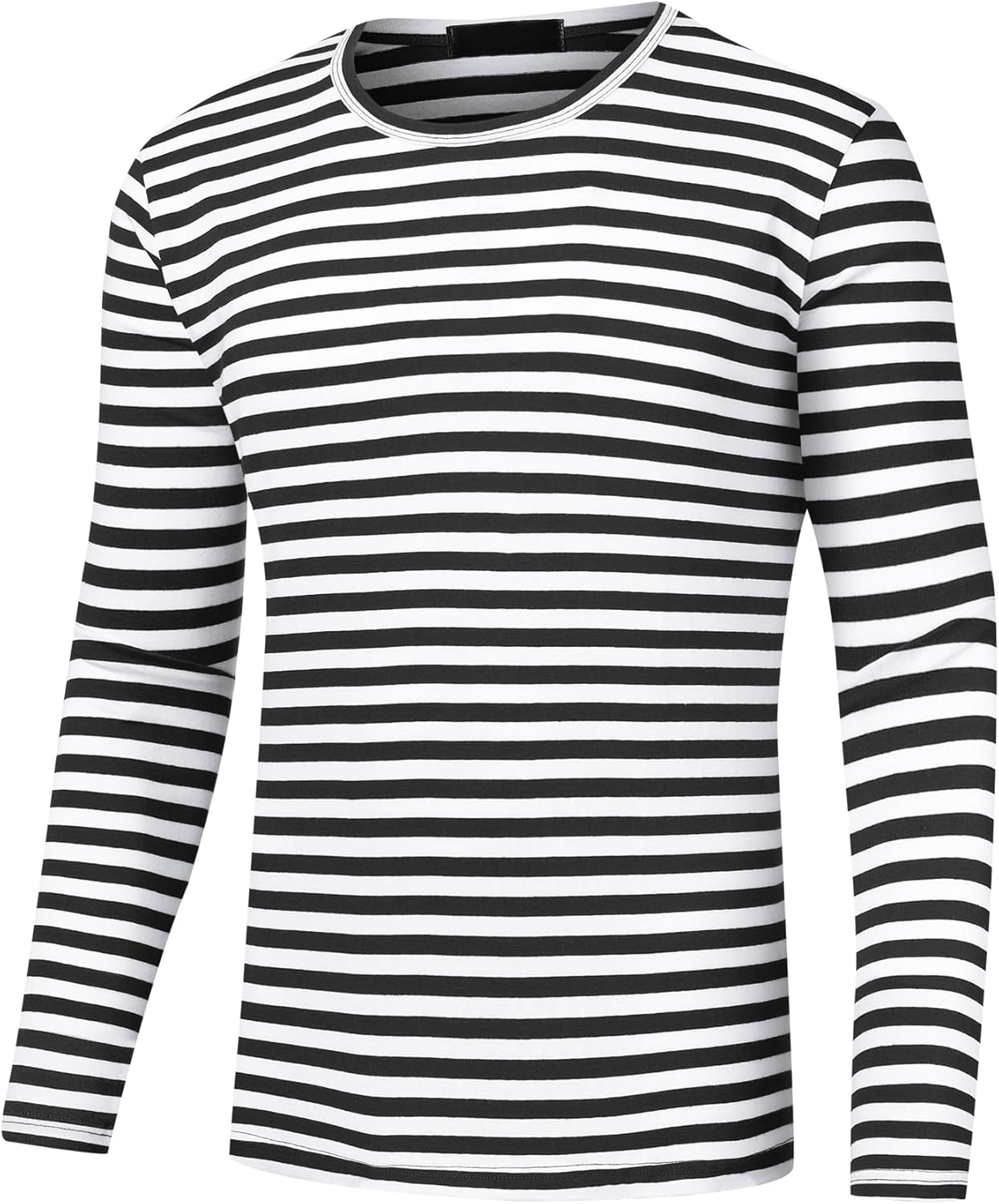 Lars Amadeus Striped T-Shirt for Men's Casual Crew Neck Long Sleeves Basic Pullover Tee Tops