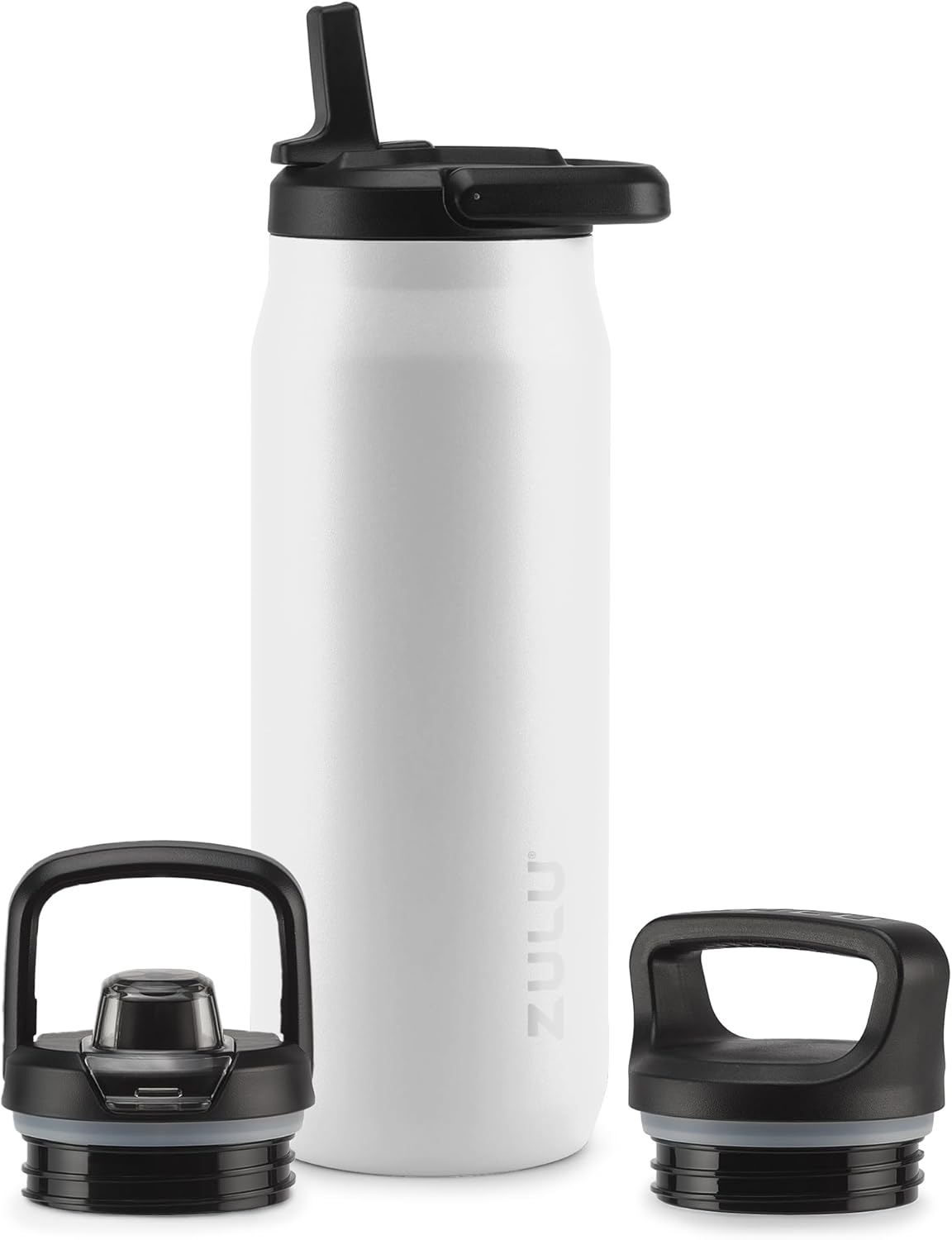 ZULU Base 32oz Stainless Steel Water Bottle with 3 Lids- Straw, Chug, Twist | Double Walled and Vacuum Insulated Metal Thermos | For Gym, Workout, Outdoor | Built in Carry Loop, Dishwasher Safe, White