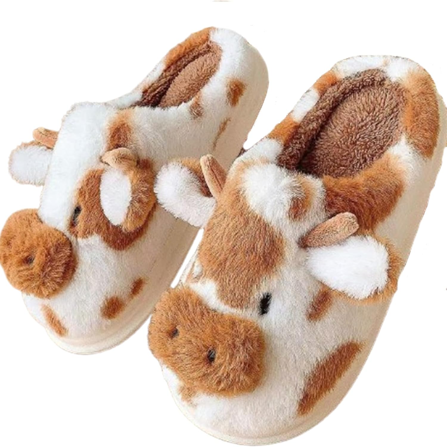 Cartoon Cow Cotton Slippers,Cute Cozy Fuzzy Animal Slippers For Women Men,Winter Warm Plush Comfy Indoor Outdoor Slippers