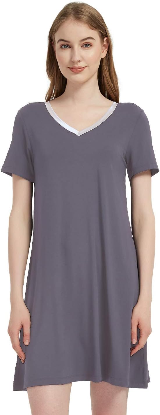 GYS Womens Bamboo Viscose Nightgown, Silky Soft Lightweight Short Sleeve Sleep Dress with Satin V-Neck for Hot Sleepers
