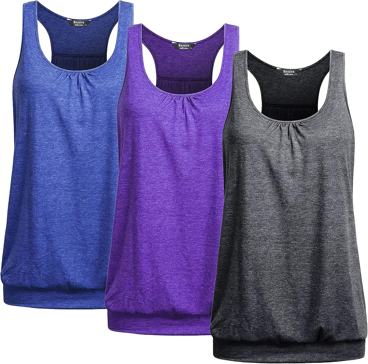 Beyove 3 Pack Banded Bottom Workout Tops for Women Tummy Flattering Yoga Tank Tops Plus Size Racerback Athletic Gym Shirts