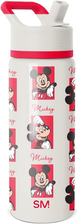 Simple Modern Kids Summit Water Bottle with Straw Lid | Disney Mickey Mouse 18oz Stainless Steel Cup Insulated Tumbler for Boys, Girls, School | Mickey Montage