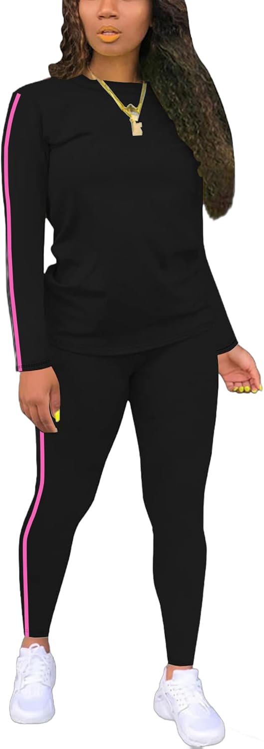 Women's 2 Piece Classic Striped Outfits Full Sleeve Lounge Long Sweatpants Jogger Matching Tracksuits Sports Sets