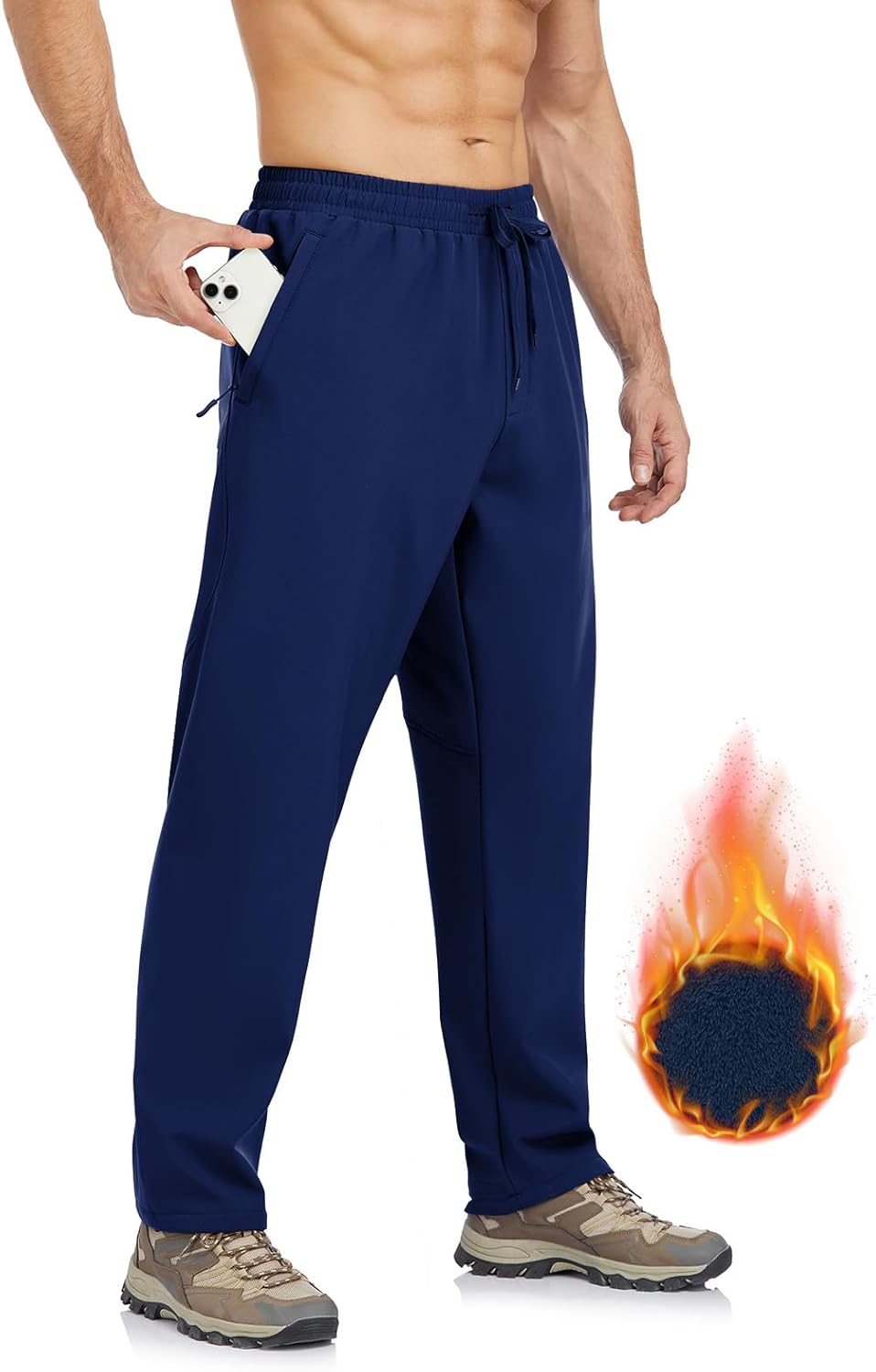 Men's Fleece Lined Pants Winter Athletic Workout Running Sweatpants Zipper Pockets Water Resistant Warm Joggers