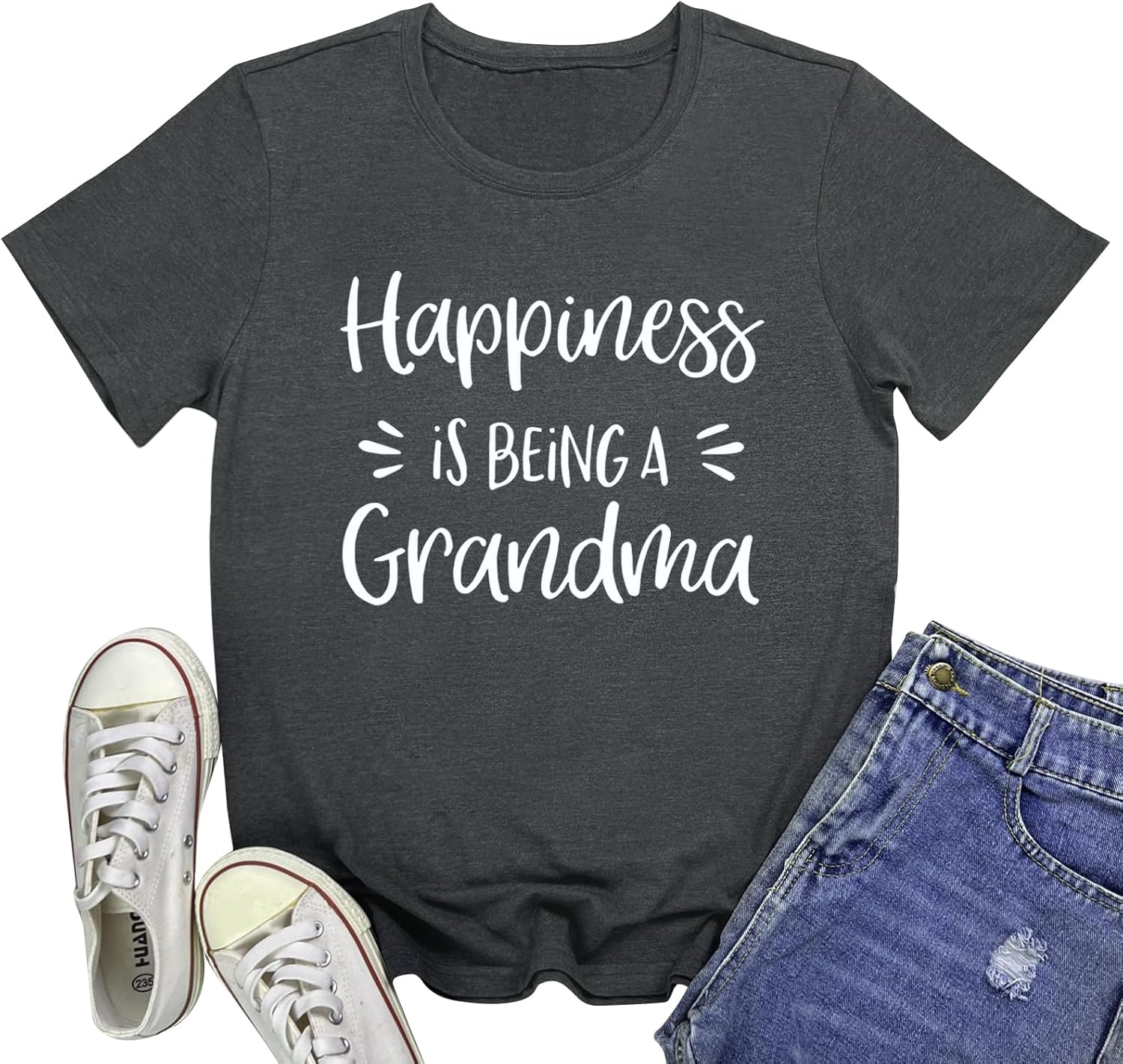 YITAN Women Happiness is Being Printed Graphic Tee Tops