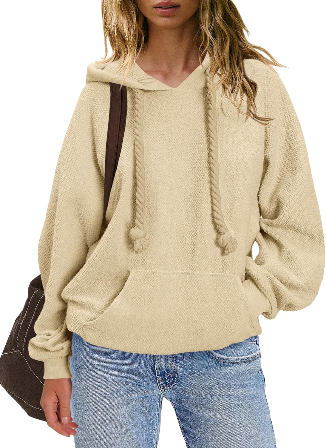 Yanekop Womens Oversized Hoodies Loose Fit Hooded Sweatshirts V Neck Pullover Hoodie Casual Drawstring Tops with Pocket