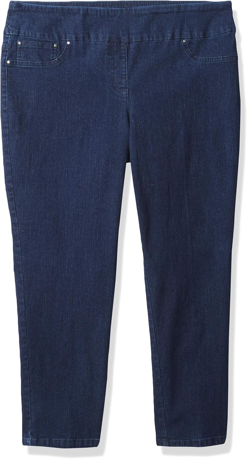 Ruby Rd. Womens Womens Petite Mid-Rise Pull-on Straight Extra Stretch Denim Ankle Pant