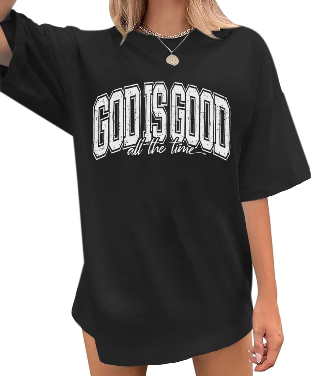 Christian T Shirts for Women God is Good Shirt Oversized Jesus Religious Faith Inspirational Tshirts Bible Verse Tops