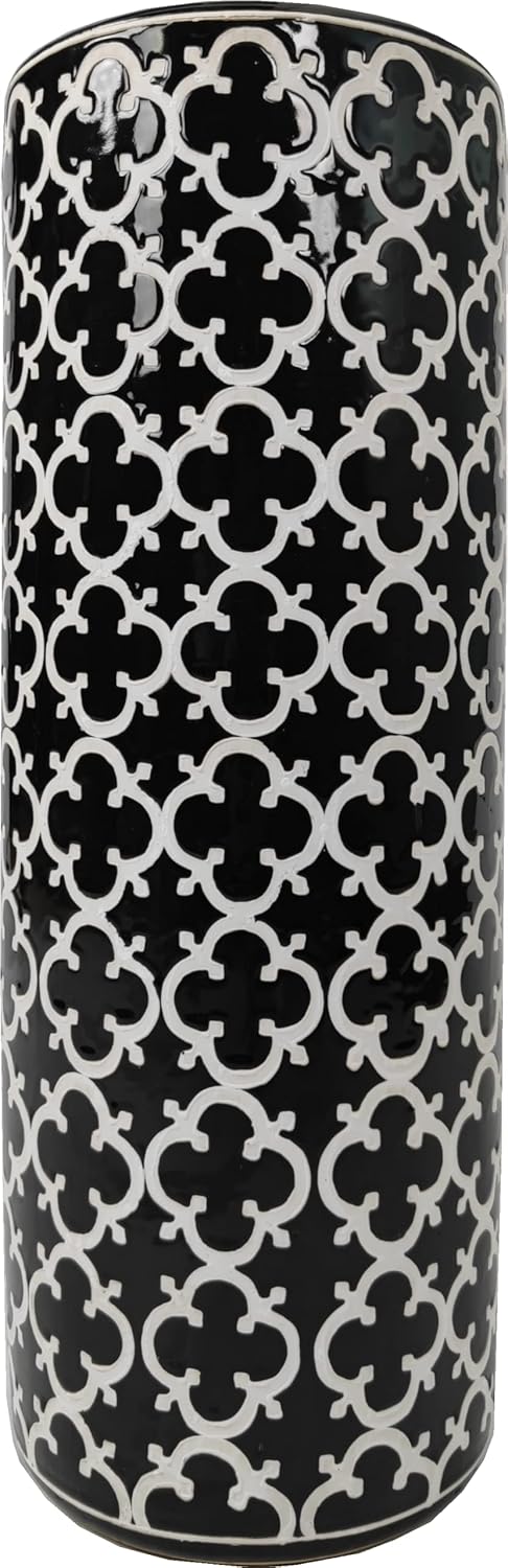 - 【Elegant and Functional】 The attractive contrast of the black background with the white flower pattern accentuates the beautiful design of this stand. This striking piece is both functional and elegant as either an umbrella stand or a vase for floral arrangements.
