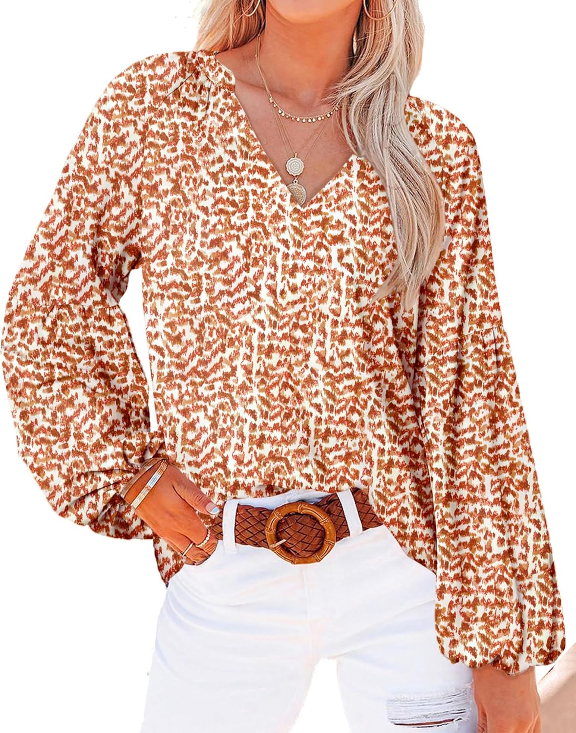 BTFBM Blouses for Women Dressy Casual Floral Summer Boho Tops V Neck Lightweight Long Sleeve Shirts Spring Clothes 2026