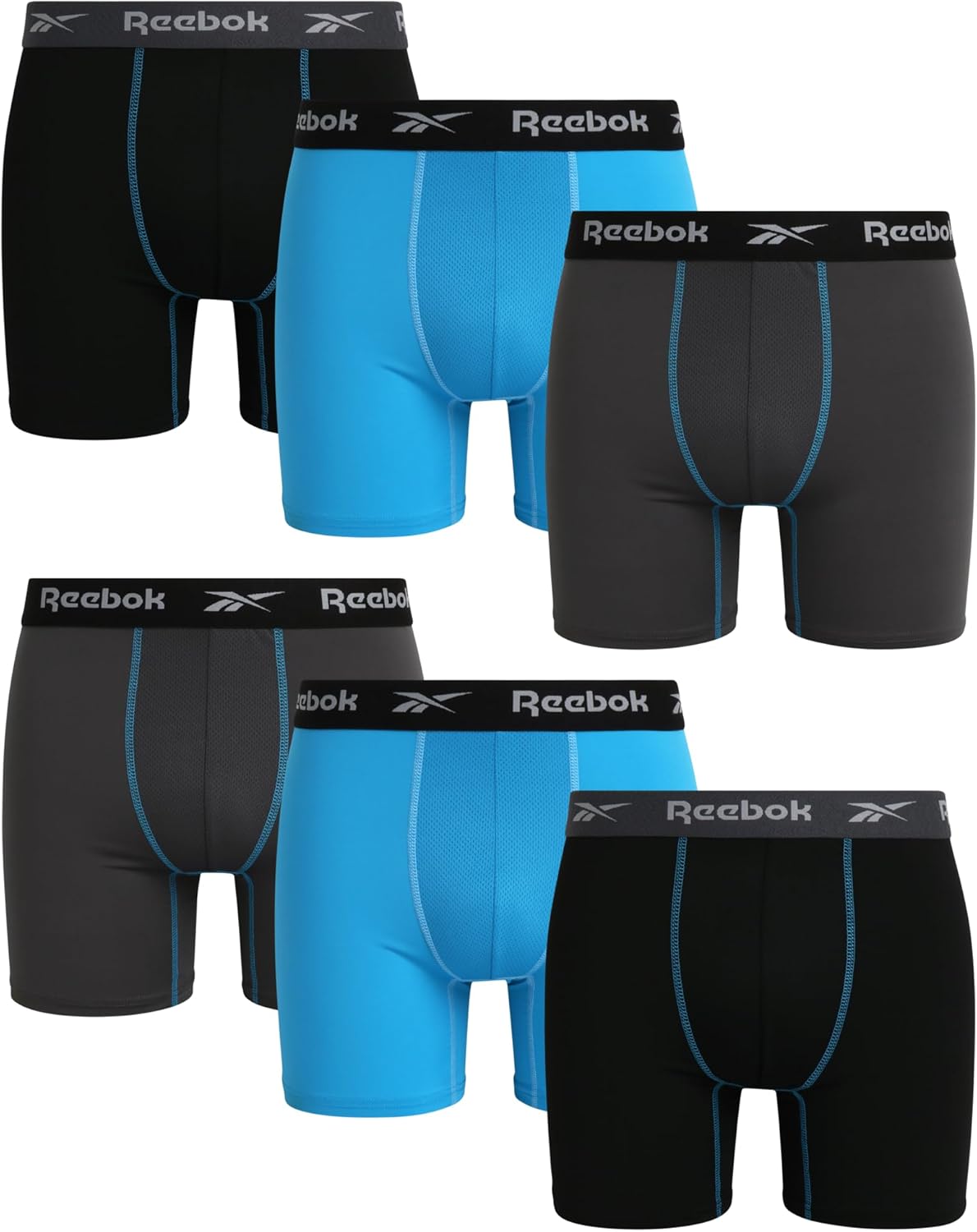 Reebok Mens Boxer Briefs - 6 Pack 6'' Inseam Moisture Wicking Mens Underwear Tag Free Boxer Briefs with Contour Pouch