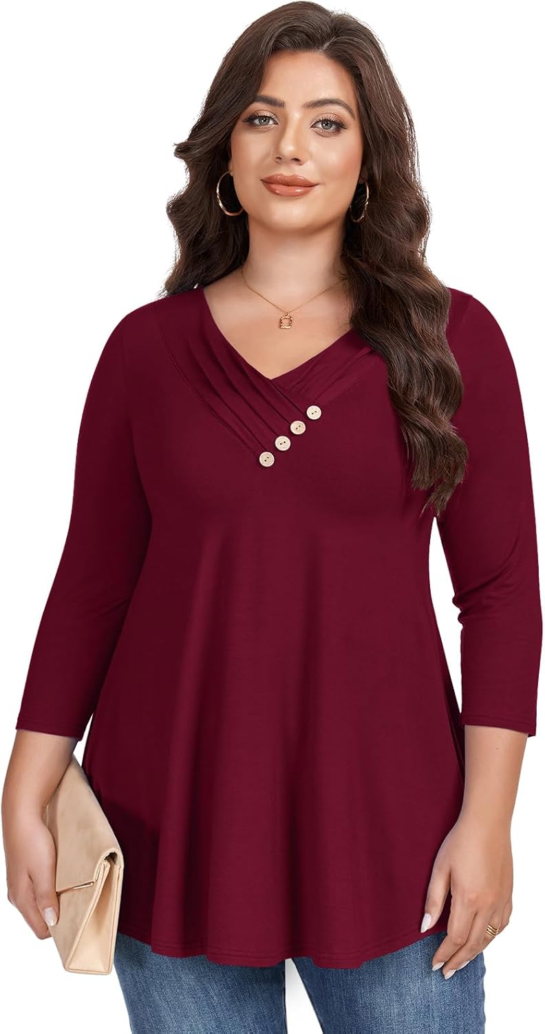 LARACE Plus Size 3/4 Sleeve Womens Tops for Fall Spring, Casual Flowy Women's V-Neck Shirts Tunic Top to Wear with Leggings