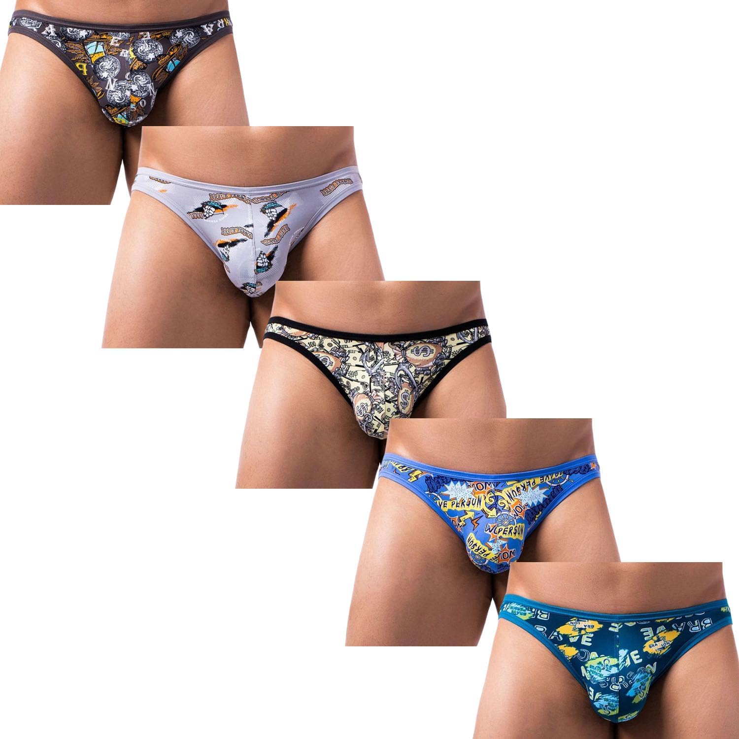 TAPUU Mens Design Low Rise Bikini Briefs Underwear