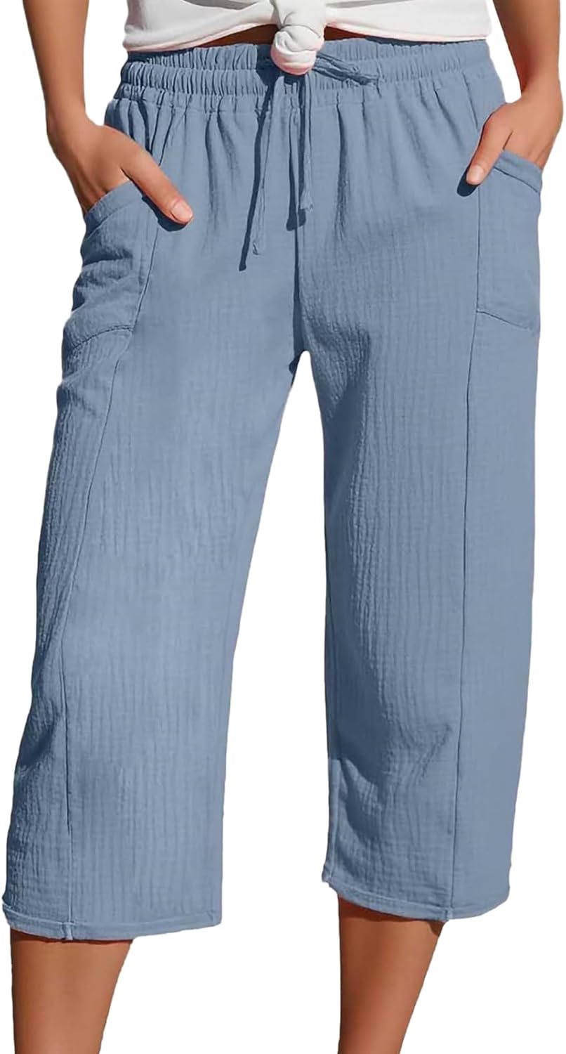 Beach Pants for Women Simple Solid Color Casual Trendy High Waist Soft Comfy Trousers Vacation Travel Outfits