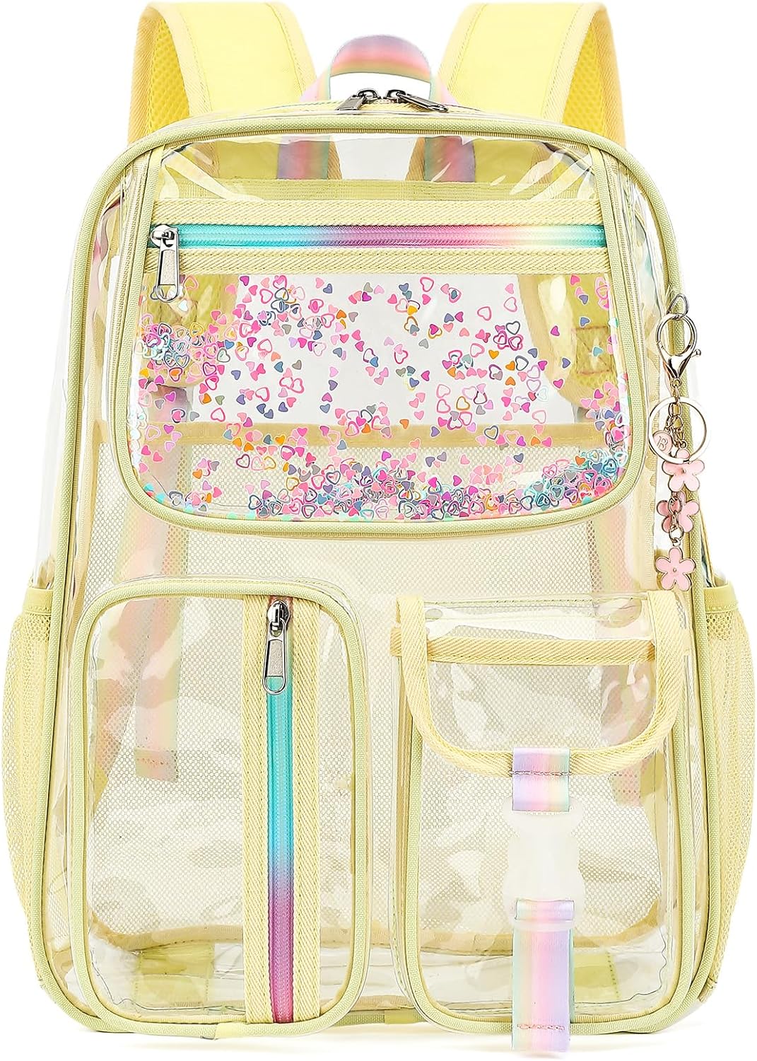 Clear Backpack for Girls Women, School Bookbag Heavy Duty See Through Backpacks (Light Yellow)