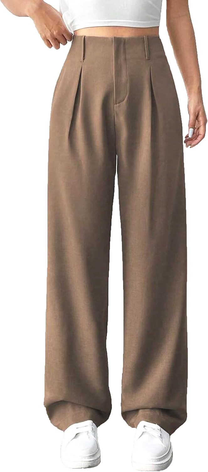 Womens High Waisted Wide Leg Pants Pleated Tailored Trousers with Pockets Business Casual Dress Pants