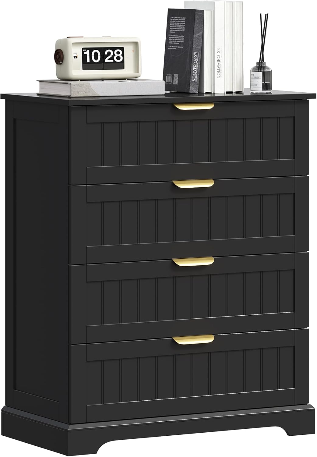 - Modern Farmhouse Style : Featuring a sleek black finish with vertical panel details, this 4-drawer dresser combines modern minimalism and farmhouse warmth, easily complementing various interior décor styles