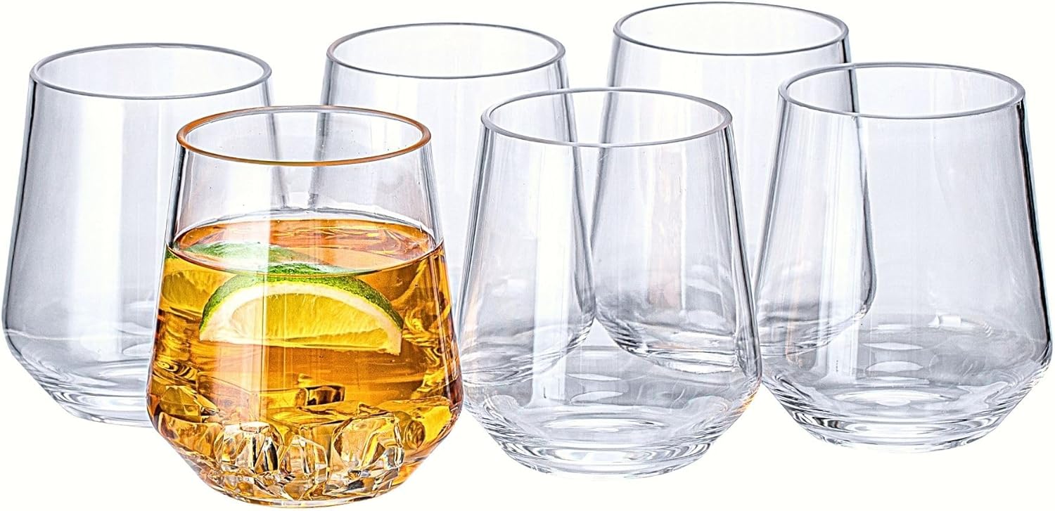 16oz Clear Stemless Wines Cups (Set of 6), Shatter-Proof Acrylic Glasses Drinkware, Reusable Plastic Bar Glasses, BPA-Free, Dishwasher-Safe