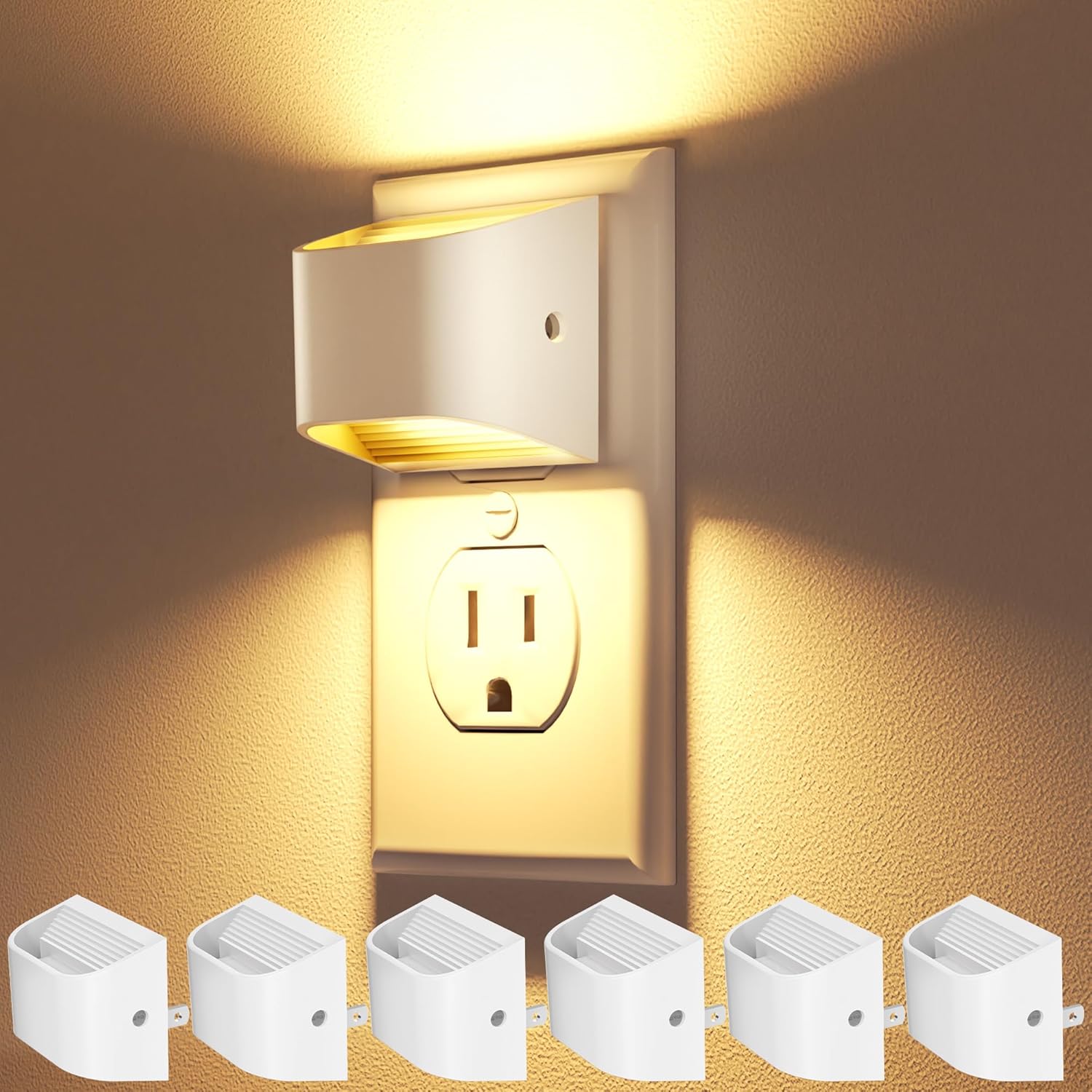 VOLISUN Night Lights Plug into Wall, 6 Pack Up and Down LED Night Light with Dusk to Dawn Light Sensor, 3000K Warm White Nightlight for Hallway, Bedroom, Bathroom, Kitchen White