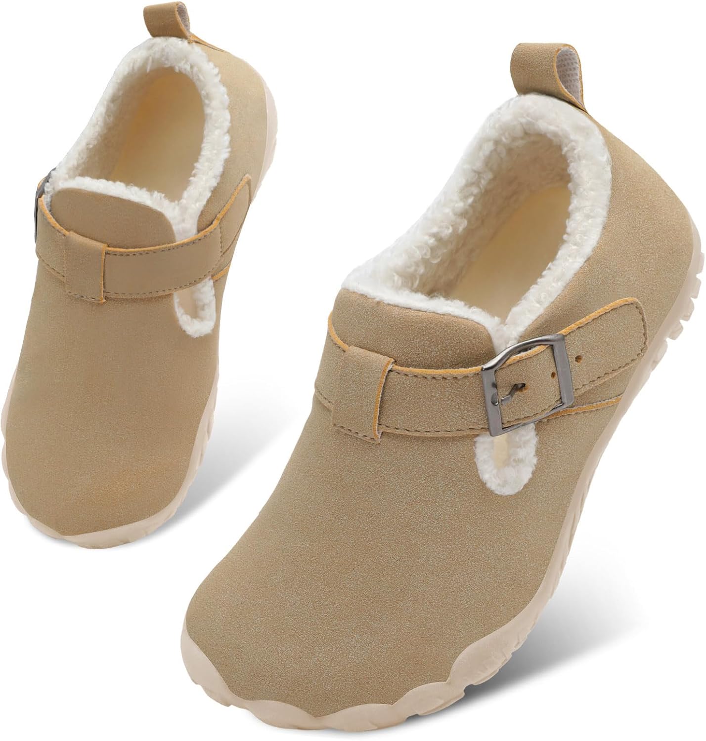 BARERUN Toddler Slippers Wide Waterproof House Shoes Fuzzy Suede Moccasin Slippers for Kids Barefoot Adjustable Indoor Outdoor Slip On Warm Winter Shoes