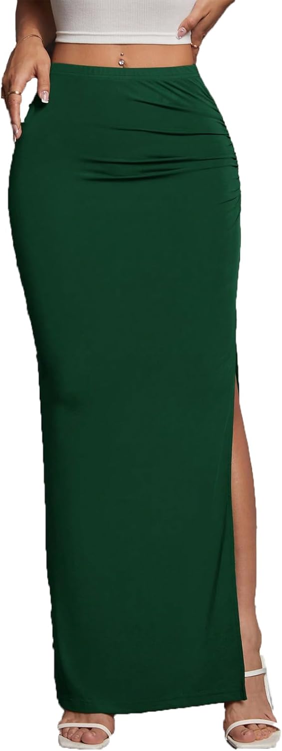 AirZeal Women's Maxi Skirt Ruched Side Slit Thigh Elegant Bodycon Pencil Skirts