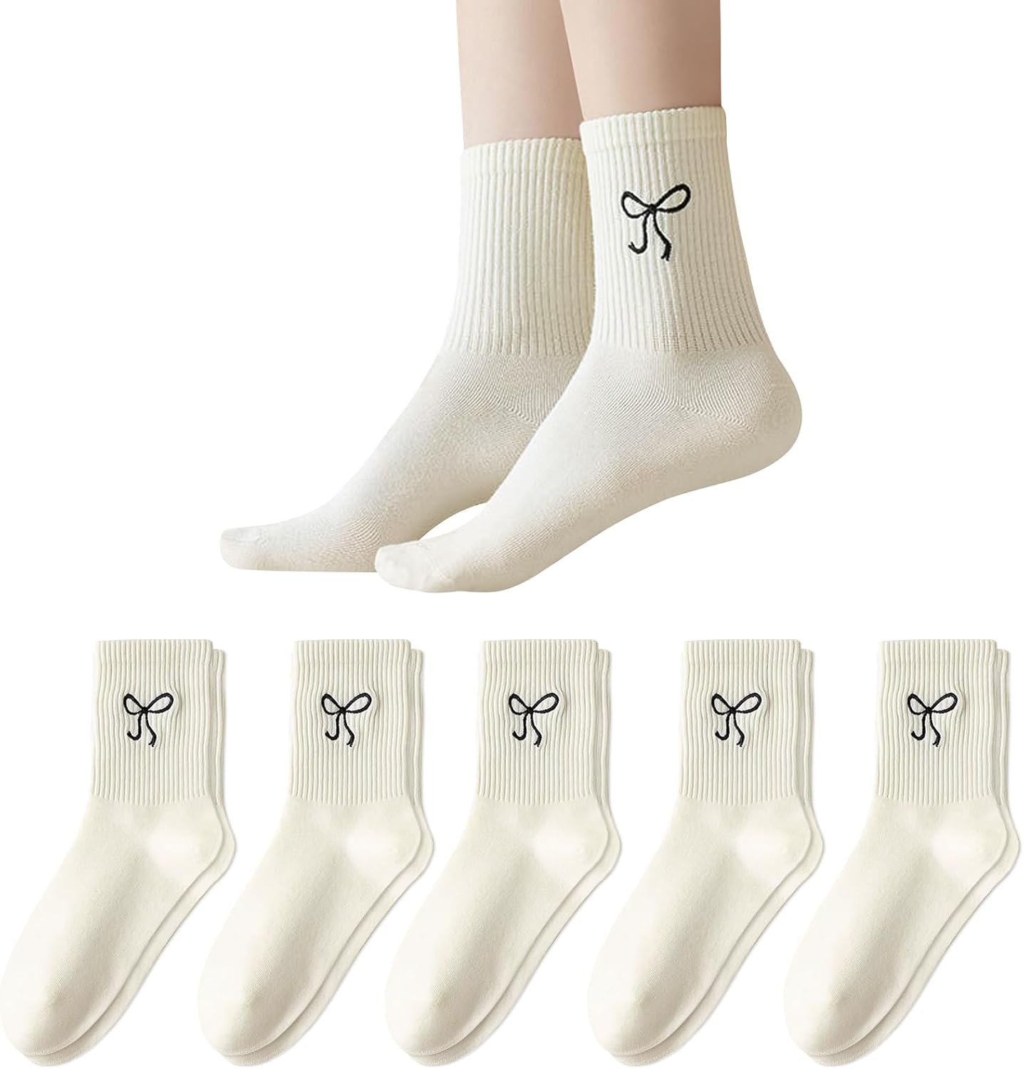 Women's Cute Bow Crew Socks, Cherry Strawberry Ruffled Calf Socks - Casual Cotton Novelty Fun Ankle Sock