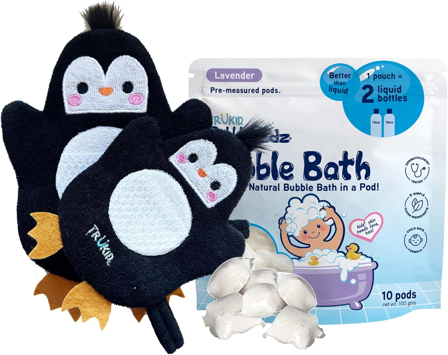 TruKid Lavender Bubble Podz & BubbleGlove Set – Bubble Bath Pods with 2 Wash Gloves for a Calming Bath Routine