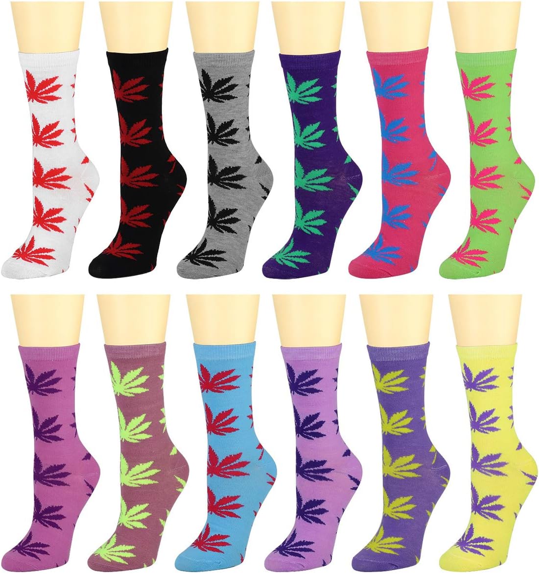 Falari 12 Pairs Women's Cotton Crew Socks Assorted Colors