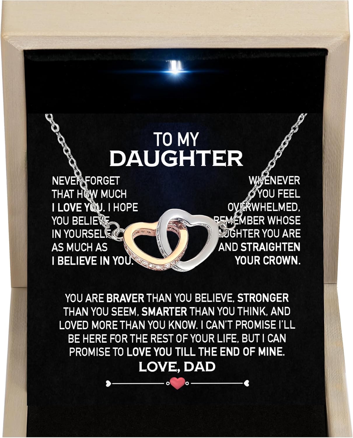 Larvincy To My Daughter Necklace From Dad With Heartfelt Message & Elegant Box, Gifts For Daughter From Father, Beautiful Jewelry Gift From Love Daddy On Graduation, Birthday, Wedding, Valentine’s Day
