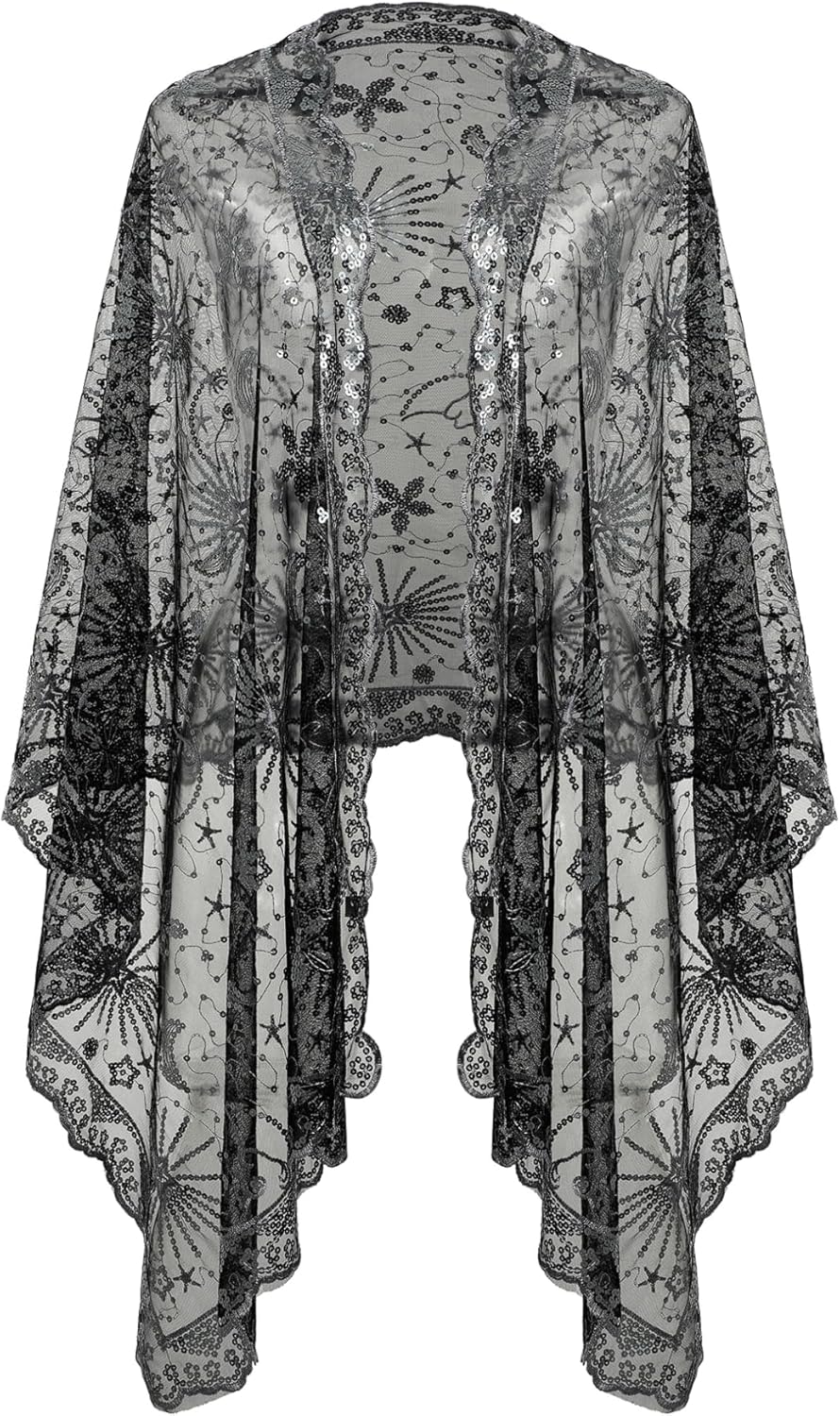 changyexi Sequin Lace Shawl Wrap, Evening Formal Sheer Shawls for Women Dressy Cover Up, Wraps and Shawls