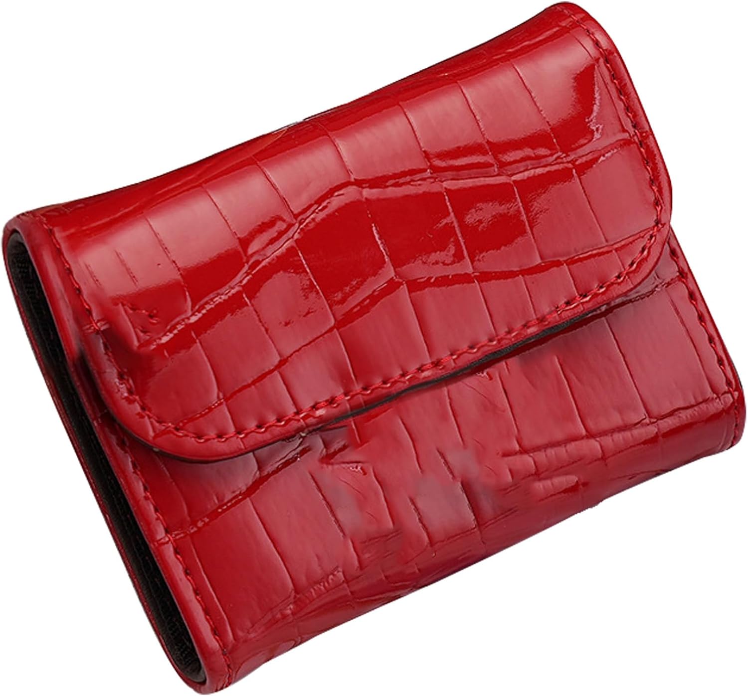 RFID Blocking PU Leather Credit Card Holder Wallet for Women, Red Compact Accordion Card Case with Multiple Slots, Small Buckle Coin Purse, Stone Litchi Pattern ID Card Organizer