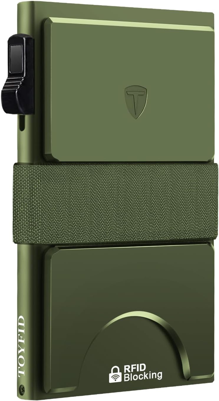 Metal Wallet with Quick Access to Cards, Aluminum Card Holder Pop Up Wallet for Men, RFID Minimalist Wallet for Men that Can Hold 14+ Credit Cards, Ideal Gift for Men, Army Green