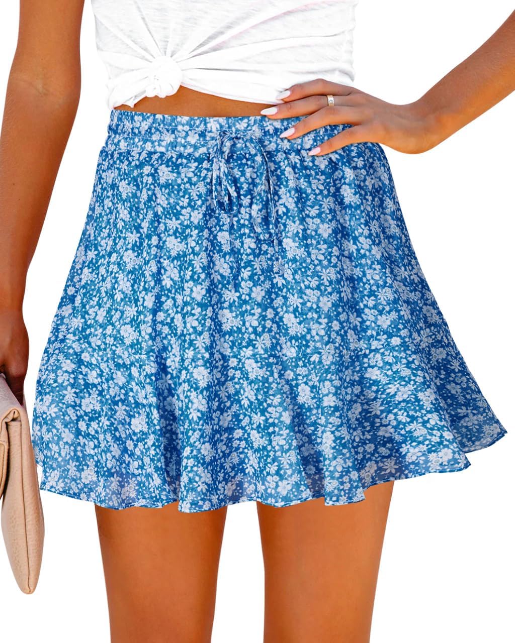 Womens Summer Flowy Shorts Casual Boho Floral Skorts Ruffle Mini Skirts Running Tennis Chiffon Butterfly Shorts Floral Blue, Small