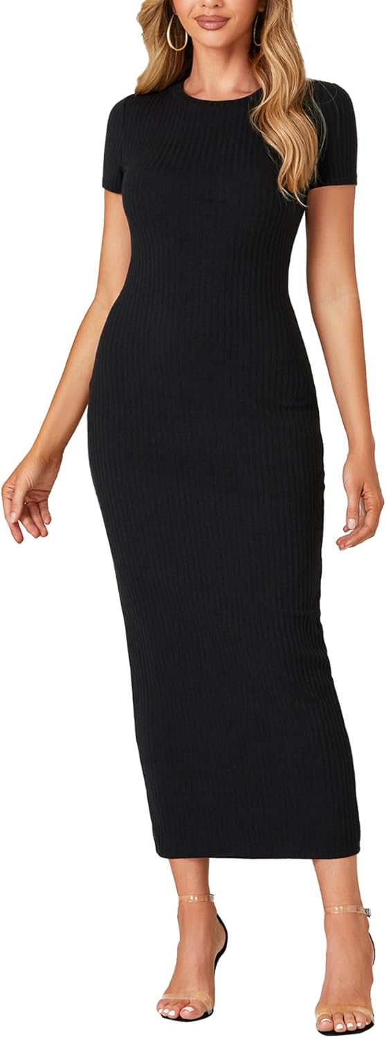 Umenlele Women’s Casual Short Sleeve Ribbed Knit Bodycon Fitted Pencil Long Maxi Dress
