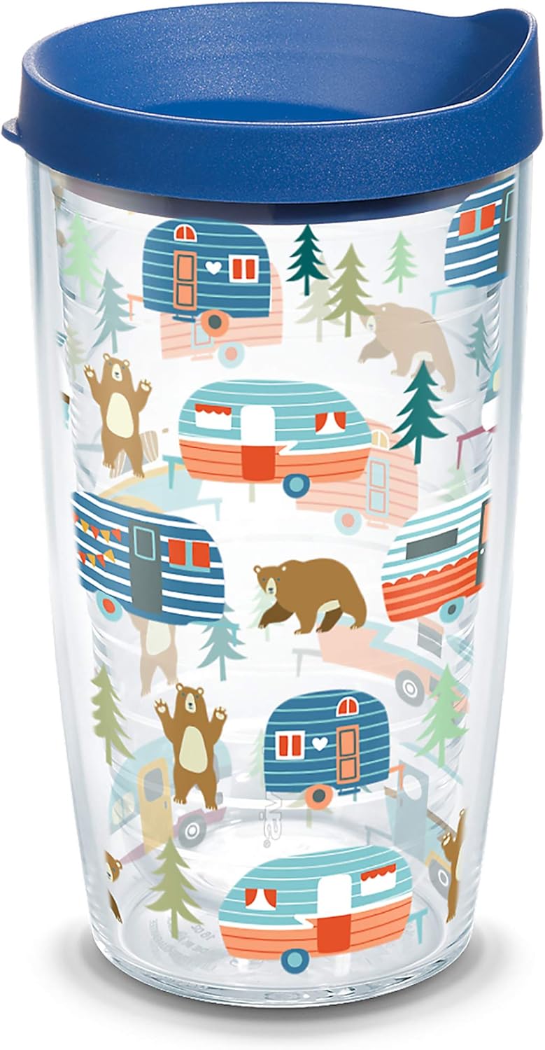 Tervis Trailer Bears Made in USA Double Walled Insulated Tumbler Travel Cup Keeps Drinks Cold & Hot, 16oz, Clear