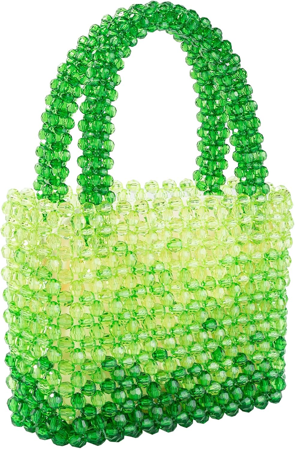 Women Acrylic Purse Mini Beaded Evening Handbags Handmade Gradient Transparent Blue Beads Tote Bags for Wedding,Beach,Party