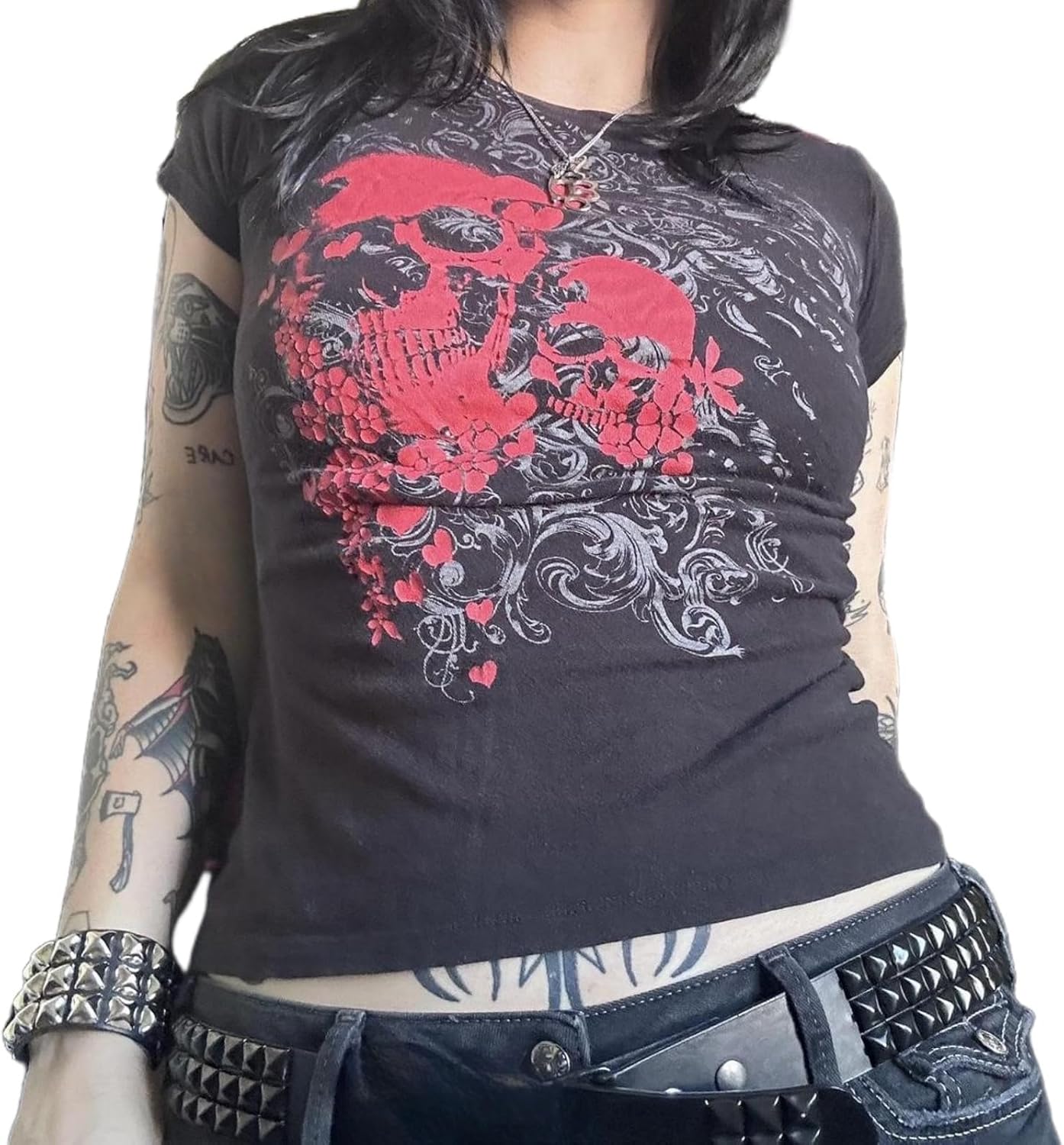 Women Y2K Graphic T-Shirts Punk Gothic Grunge Emo Top Short Sleeve Vintage 00s Aesthetic Clothes Baby Tees