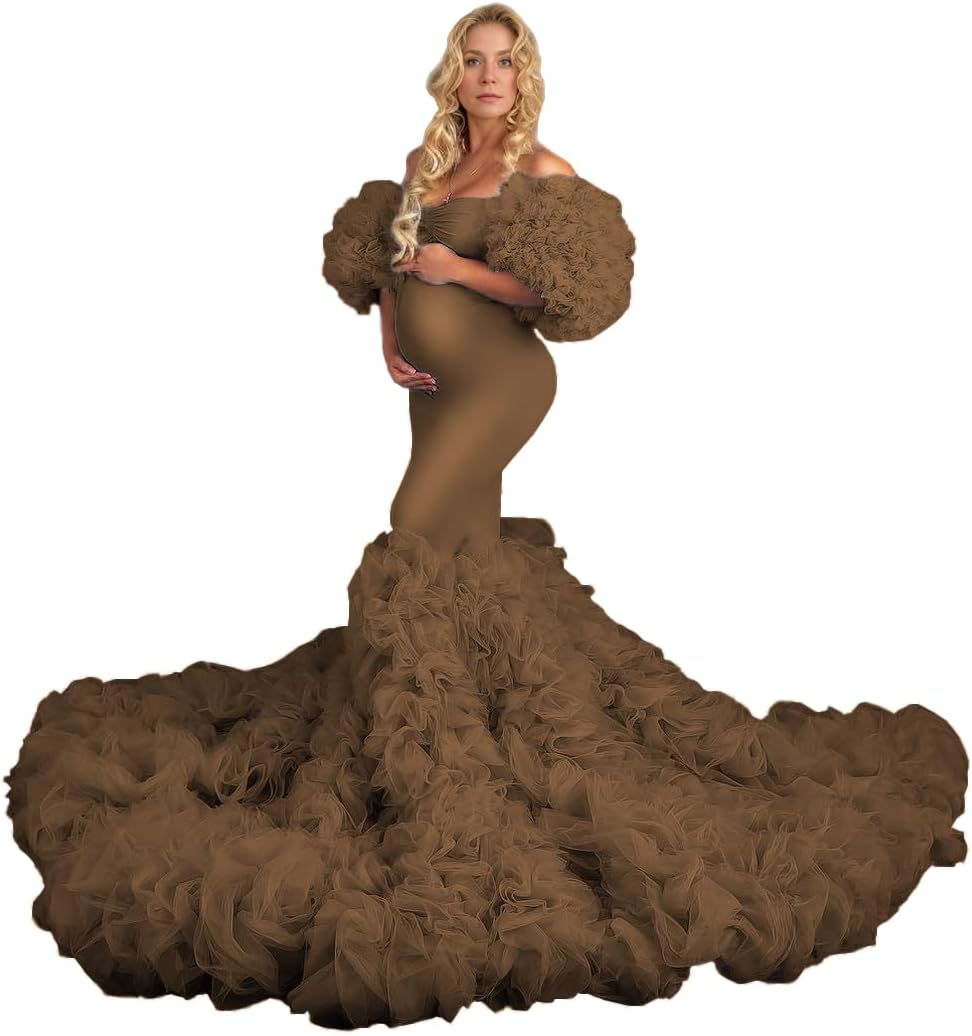 Off Shoulder Tulle Maternity Dress for Photoshoot Mermaid Baby Shower Dress Sweetheart Ruffles Pregnancy Gowns