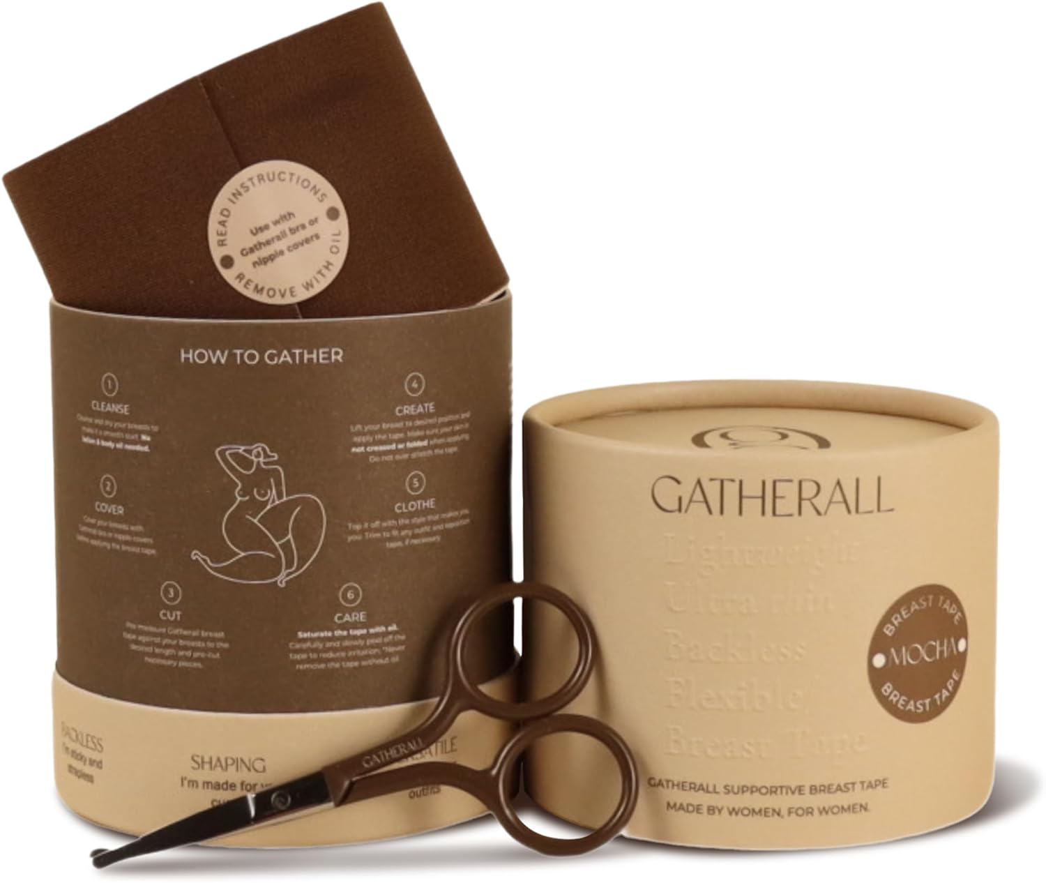 Gatherall Breast Lift Tape - Reusable & Re-Adjustable Boob Tape with Mini Scissors Included - Ultra-Thin, Smooth & Waterproof