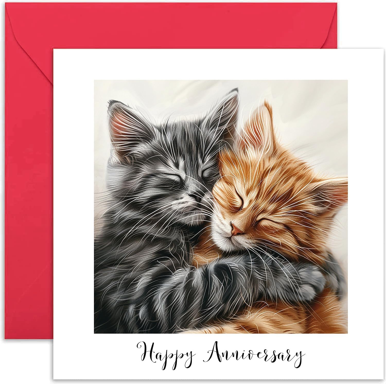 Sweet Anniversary Cards for Husband of Wife - Cat Anniversary Card - Cat Hugging Artwork - For Boyfriend Girlfriend Men or Women - Charming Cute Wedding Anniversary Card for Couple - Mum and Dad