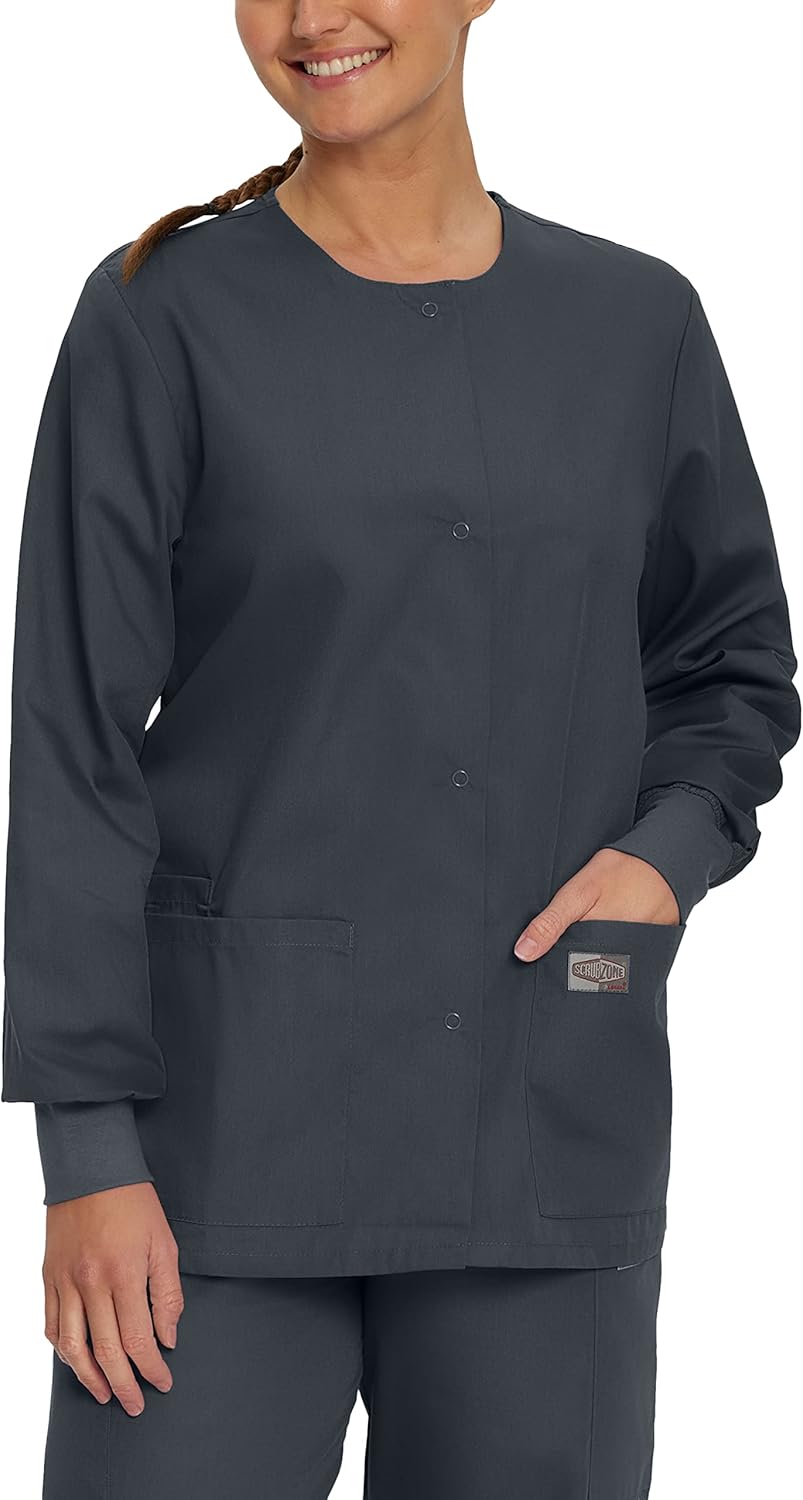 Landau Scrub Zone Relaxed Fit 3-Pocket Snap-Front Scrub Jacket for Women 70227 Graphite