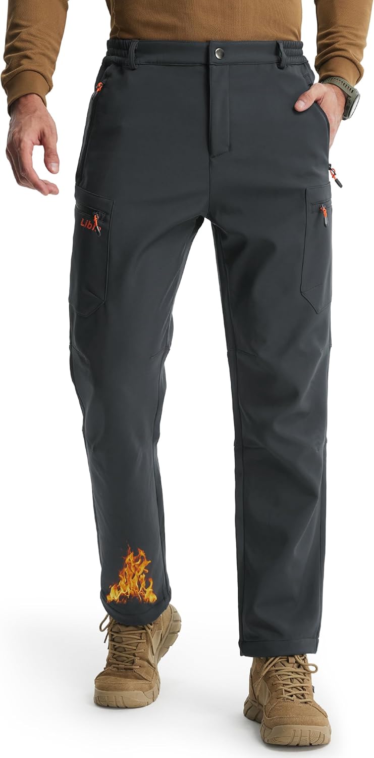 Libin Men's Fleece Lined Hiking Pants Snow Ski Water Resistant Thermal Zipper Pockets Insulated Softshell Cold Weather