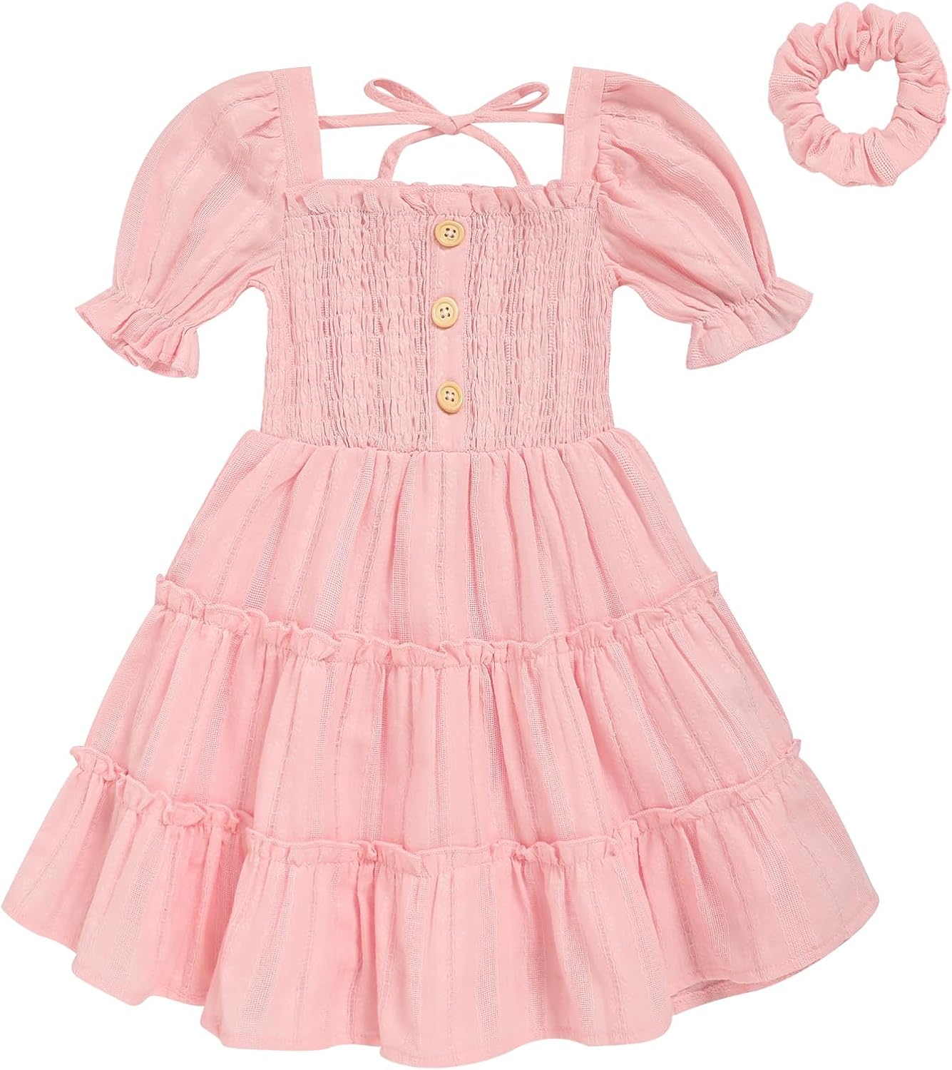 GRNSHTS Toddler Girl's Summer Sundress | Kids Short Sleeve Beach Dress with Matching Headband 2-6Y