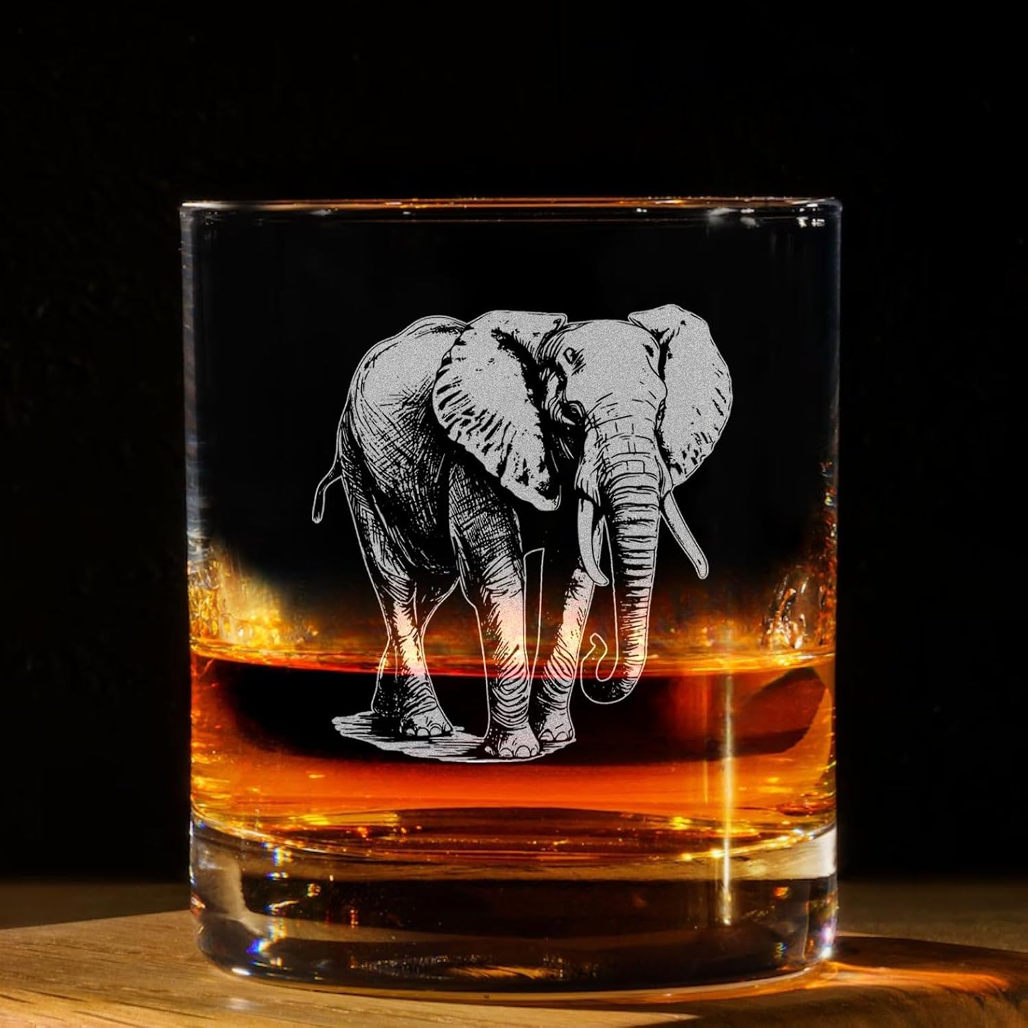 Elephant Vintage Engraved Whiskey Glass - Wildlife Themed Gift - Unique Birthday Gifts For Friends And Family - Elephant Lovers Gift - Vintage Old Fashioned Glass - Decor For Bar