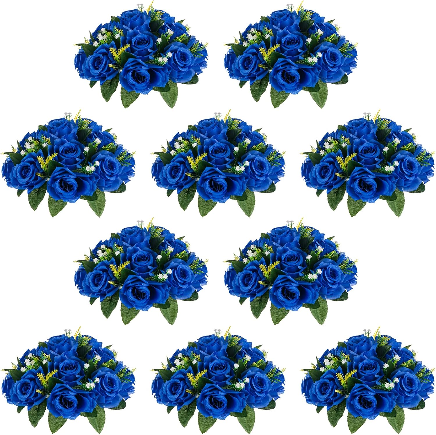 NUPTIO Flower Ball Arrangement Bouquet - 10 Pcs 9.5 inch Diameter Royal Blue Fake Flowers Roses Balls for Centerpieces Tables - Artificial Rose Arrangements for Wedding Centerpiece Table Decorations