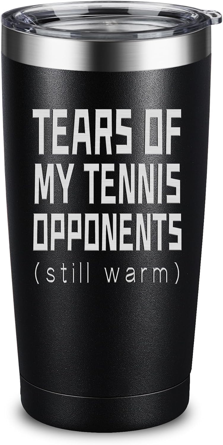 - Best Tennis Gifts for Birthday, Celebration or Just Because: 20 oz cup with forever engraved "Tears of My Tennis Opponents Still Warm" saying on front.