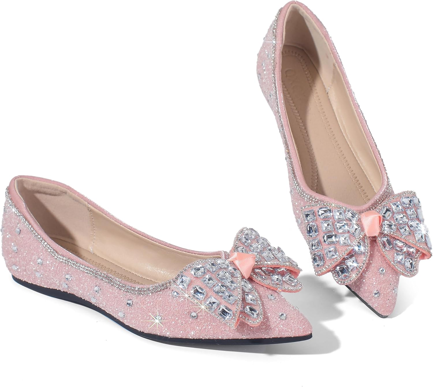 Women's Pointed Toe Flats Diamond Bow Sequin Comfortable Slip On Flats Light Weight Dress Shoes