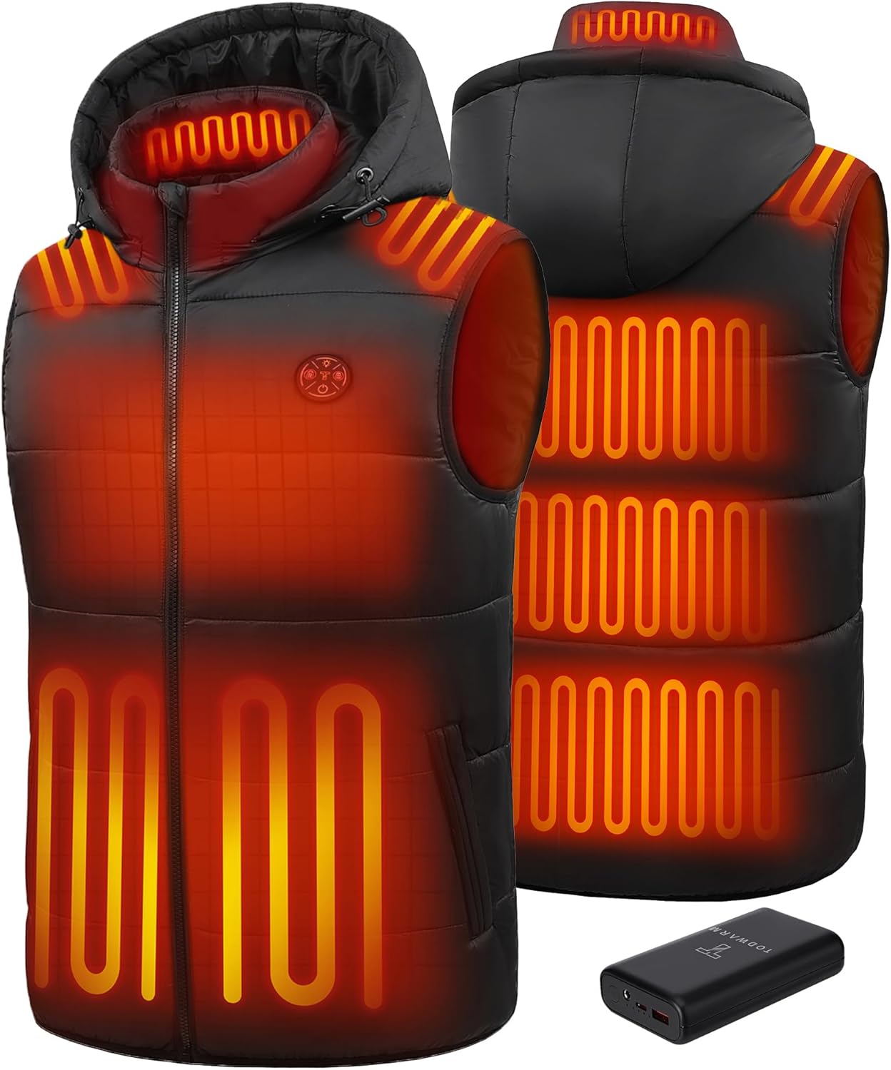 Men Heated Vest with 16000mAh Battery Pack Included, Detachable Hood Sleeveless Electric Warming Jacket for Winter Hiking Cycling, 2XL