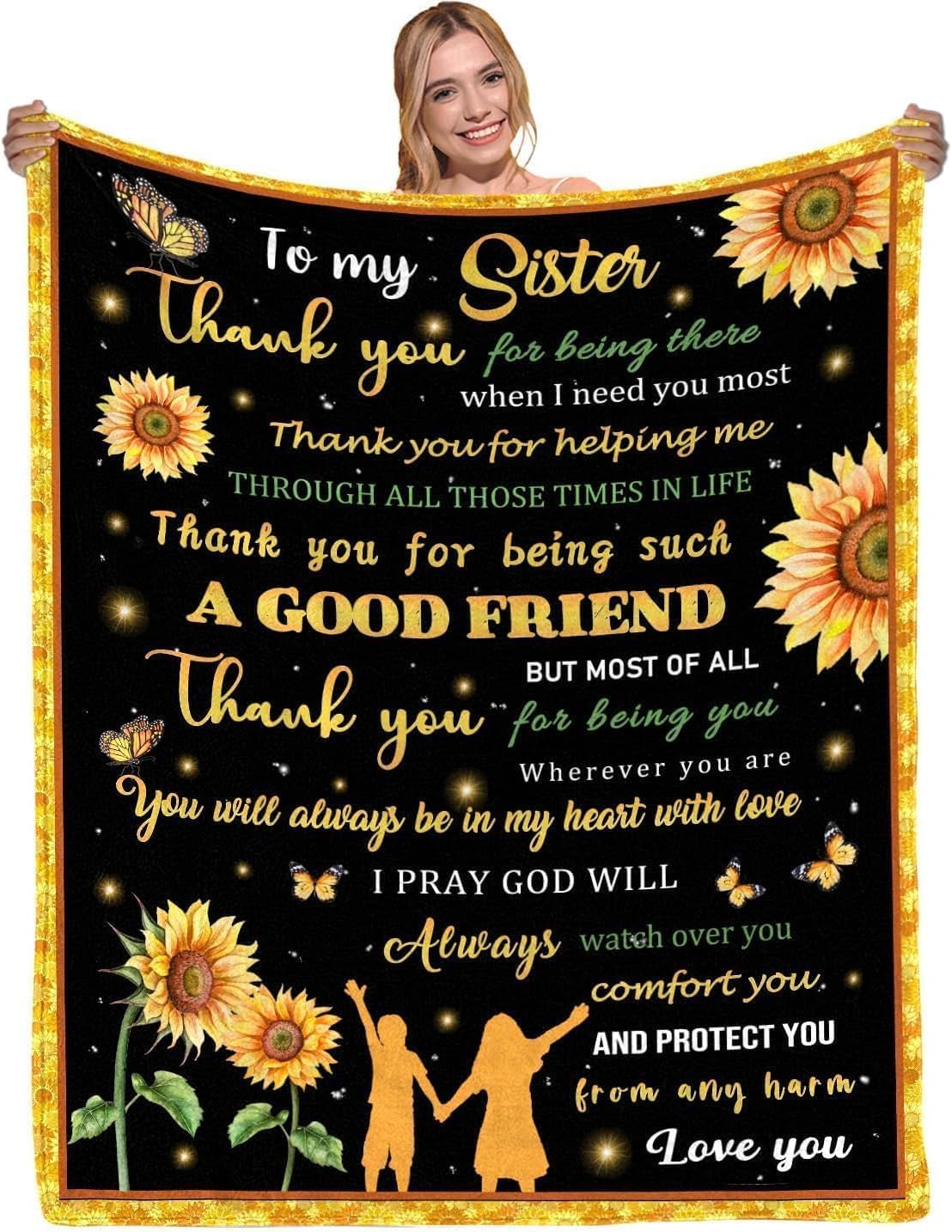 - 【Sister Gift from Sister】A warm and soft sunflower blanket is not only to bring warmth, but also to bring a sense of love to your sister. It's a perfect gift for your sister on her birthday, Christmas, Thanksgiving Valentine's day Mother's day or any special occasions. Sweet and warm words to remind her of your support and love on each day. A unique and special gifts that your sister would cherish forever