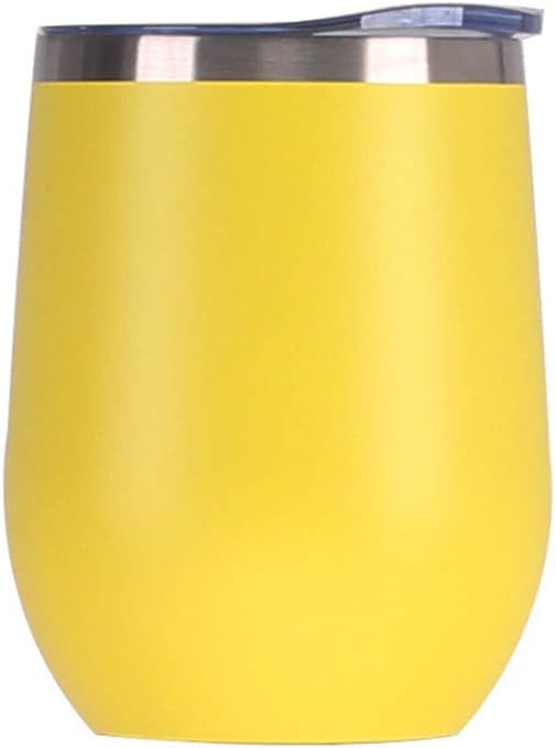 12 oz Stainless Steel Wine Tumbler Stemless Glasses with Lid, Double Wall Insulated Travel Mug Perfect for Wine, Coffee, Drinks, Champagne, Cocktails (Yellow)